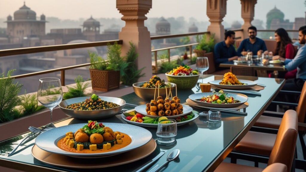 City Palace fine dining with a modern twist on traditional Rajasthani dishes like lal maas and pyaaz ki kachori.
