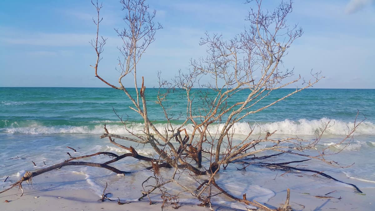 The beach is famous for its huge driftwood trees, bleached by sun, sand, and water, creating a scene often compared to an elephant graveyard. Most trees are live oak and cedar, and their roots still protect the shoreline from storms and erosion.